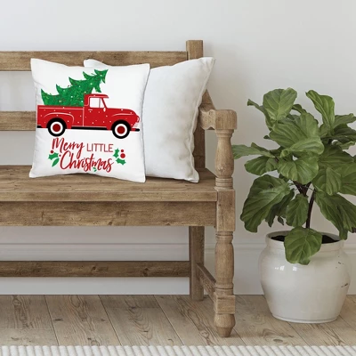 Vintage Red Christmas Truck Pillow Cover INCLUDES 1 polyester fabric material pillowcase approximately 16 in x 16 in with a hidden zipper design. Excellent for your next Holiday or Christmas Party or as everyday decor. One-sided printing only; the backside of pillow cover will be white. Pillow insert not included. COZY COMFORT: Soft and comfortable, the pillow cover is gentle and made of durable material with a canvas-like texture. Fade-resistant and easy to care, the Merry Little Christmas Tree pillow cover is great for home decoration and relaxation. EFFORTLESS DECOR: Elevating your home style is easier than ever. With vivid colors and polished design, the pillow cover adds harmony to your space with no fuss. It’s the perfect accent for your sofa, couch, bed, or other indoor furniture. HIGH-QUALITY: Vintage Red Christmas Truck Pillow Cover is professionally printed on 100% polyester material. To ensure long-lasting color vibrancy, machine wash warm. Do not bleach, tumble dry, or dry clean. Warm iron inside out. PRINTED IN THE USA: Merry Little Christmas Tree Home Decorative Throw Pillow Cover is designed and manufactured at our Wisconsin facility using materials that are Printed in the USA – Pillow Fabric Made in China.