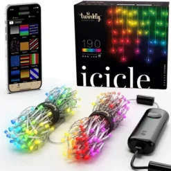Twinkly Icicle + Music Bundle App-Controlled LED Christmas Lights 190 LED RGB Multicolor Indoor/Outdoor Smart Lighting With USB Music Syncing Device