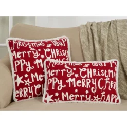 13″x20″ Oversize 'Merry Happy Christmas' Poly Filled Lumbar Throw Pillow Red – Saro Lifestyle