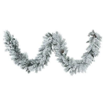 Vickerman Flocked Ashton Artificial Christmas Garland with PVC/Hardneedle Tips and Pine Cones. Wrap this garland around a banister or drape it over a mantle to create a cozy holiday feel.